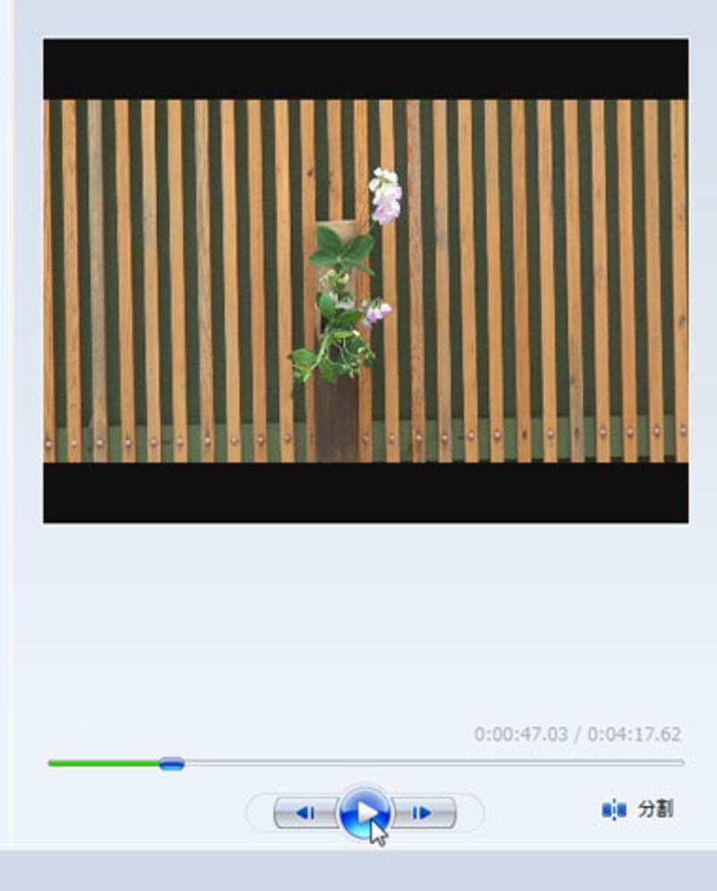 ムービーメーカーに読み込んだデータは、プレビュー画面で再生できます。