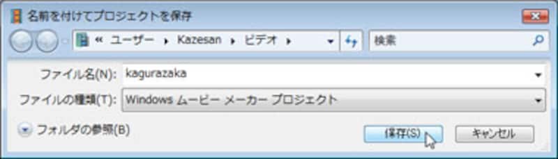「名前を付けてプロジェクトを保存」ダイアログボックスが表示されるので、ファイル名を入力して「保存」ボタンをクリックします。