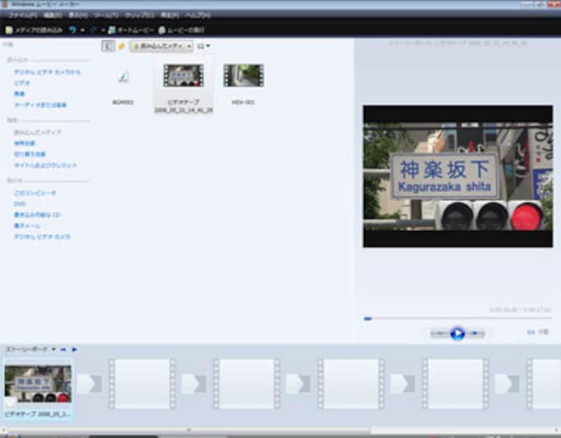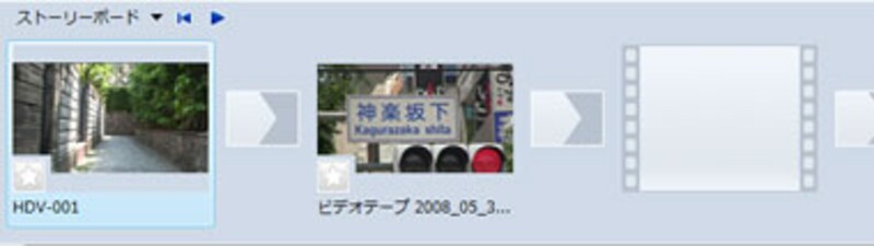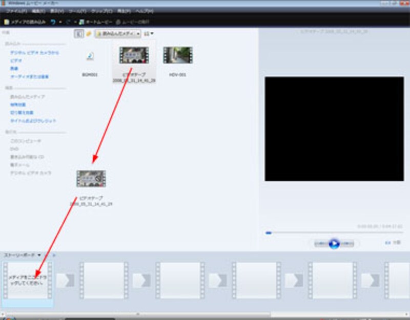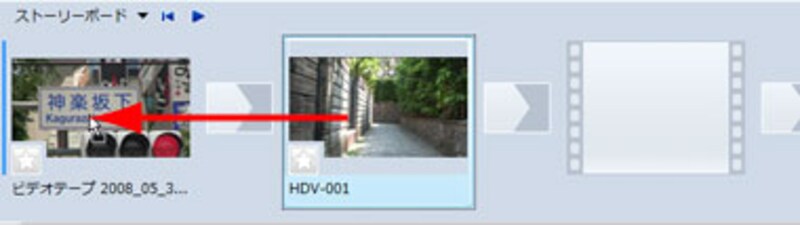 | ▲読み込んだビデオクリップを、ストーリーボードにドラッグ&ドロップする。 |