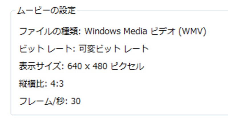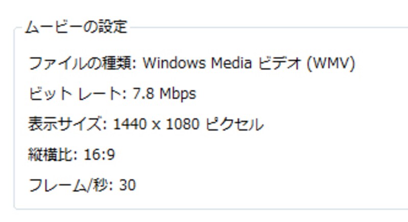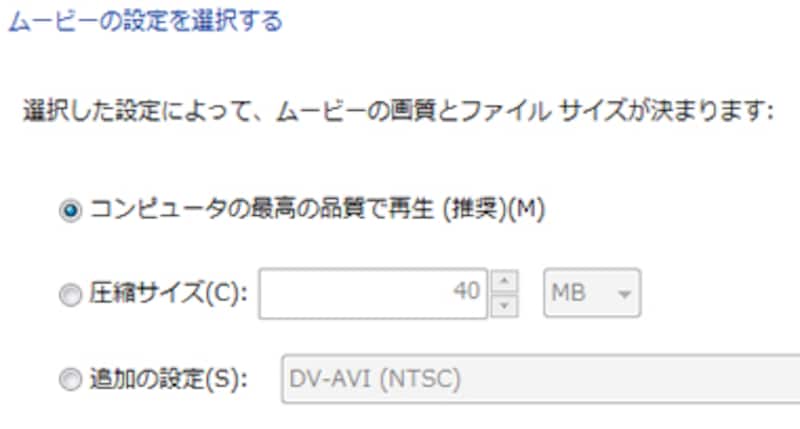 なお、デフォルトでは、「コンピュータの最高の品質で再生(推奨)」に設定されており、その設定内容が、画面左下の「ムービーの設定」に表示されています。