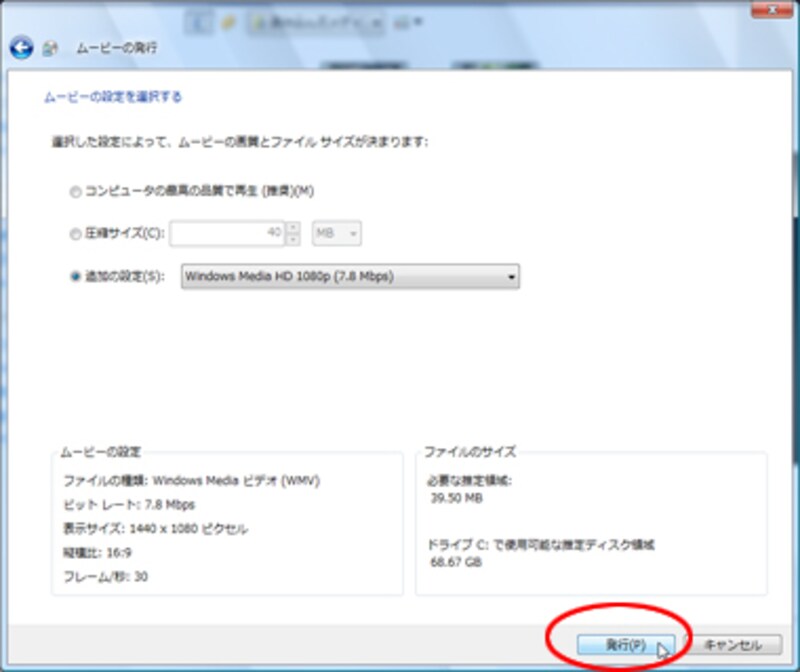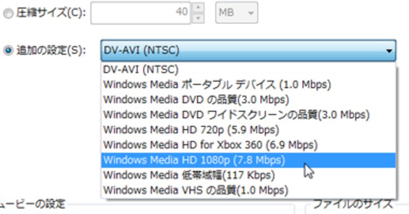 | ▲「Windows Media HD 1080p(7.8Mbps)」を選択。 |