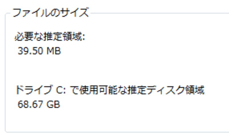 | ▲発行されるファイルのサイズが、ここに表示されている。 |