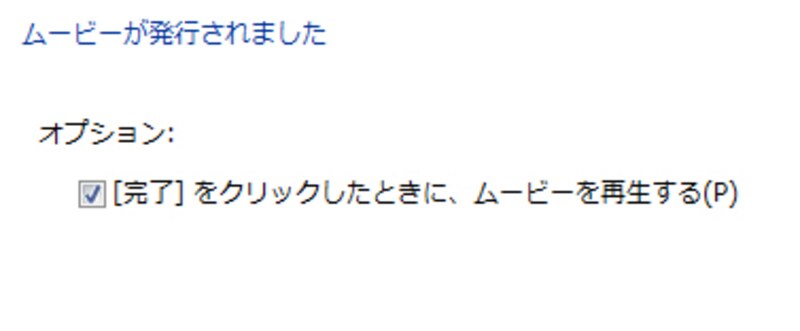 発行が終了すると、「ムービーが発行されました」メッセージが表示されるので、「完了」ボタンをクリックしてください。オプションでムービーの再生がオンになっていれば、発行され他ムービーが再生されます。また、指定したフォルダには、ビデオファイルが保存されています。