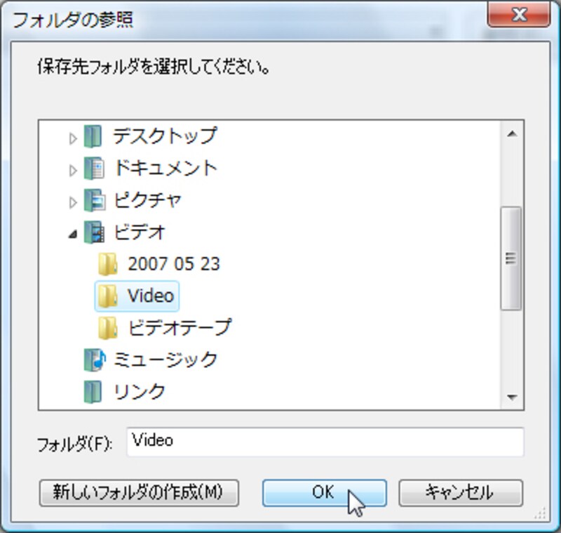 | ▲「フォルダの参照」ダイアログボックスが表示されるので、保存先フォルダを選んで、「OK」ボタンをクリックする。 |