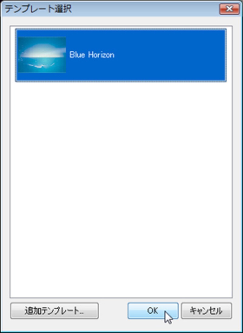 | ▲テンプレートを選んで「OK」ボタンをクリックすれば、 (製品版では、テーマごとに複数のテンプレートが用意されます) |