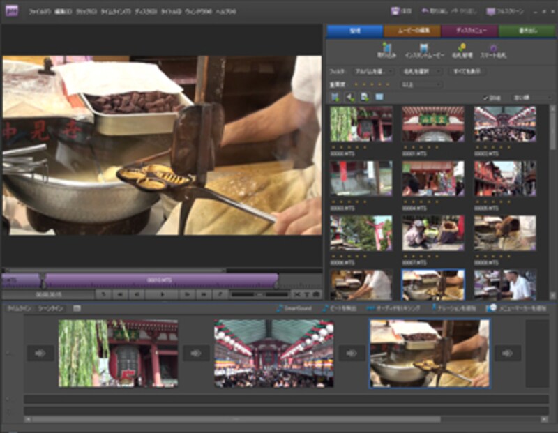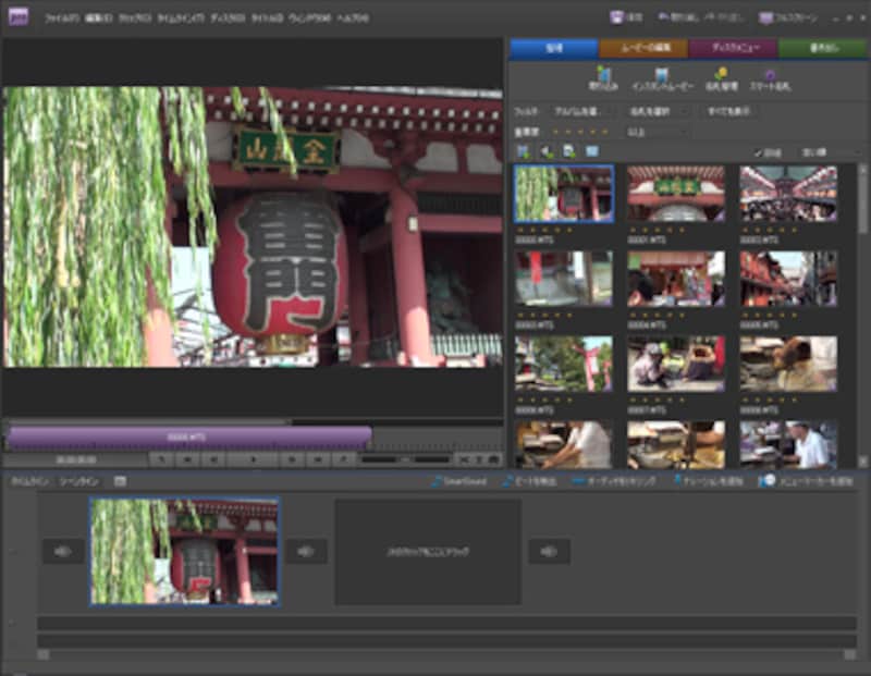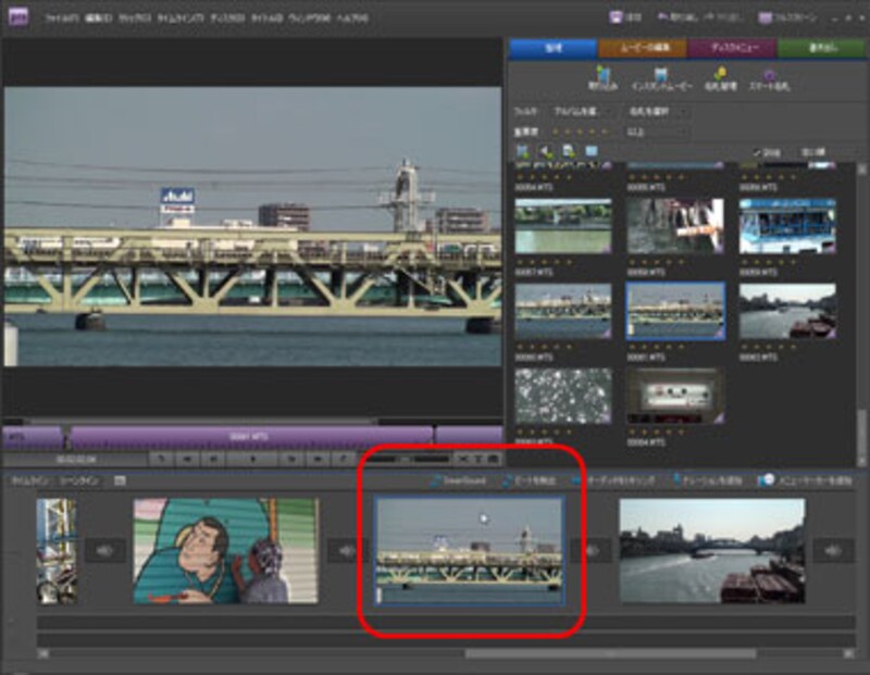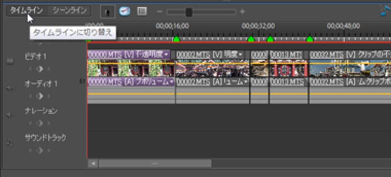 映像にお気に入りの楽曲をBGMとして設定してみましょう。作業は「タイムライン」に切り替えて行います。