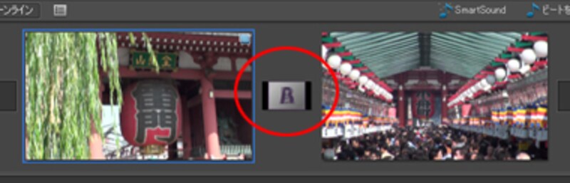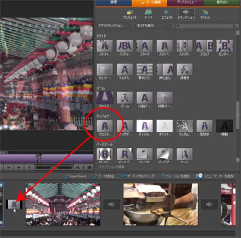 | ▲トランジションをドラッグ&ドロップする。 |