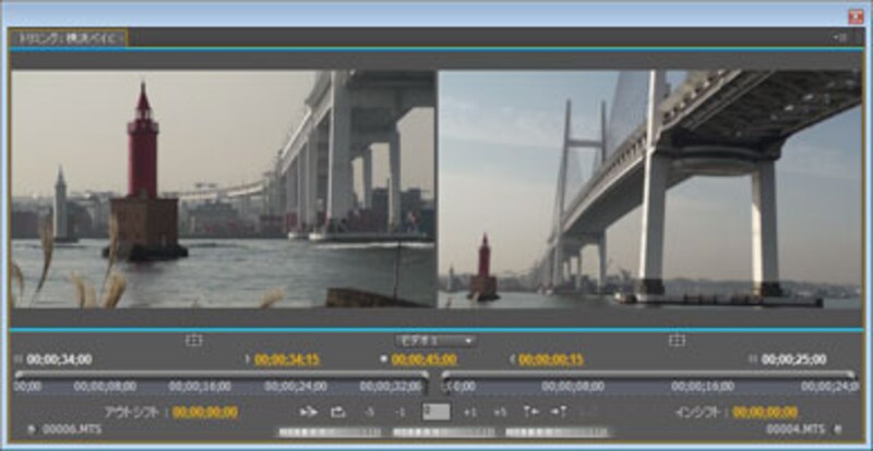| ▲「リップル」や「ローリング」編集では、各編集ポイントのイン点、アウト点をマルチ的に確認しながらトリミングできる。 |