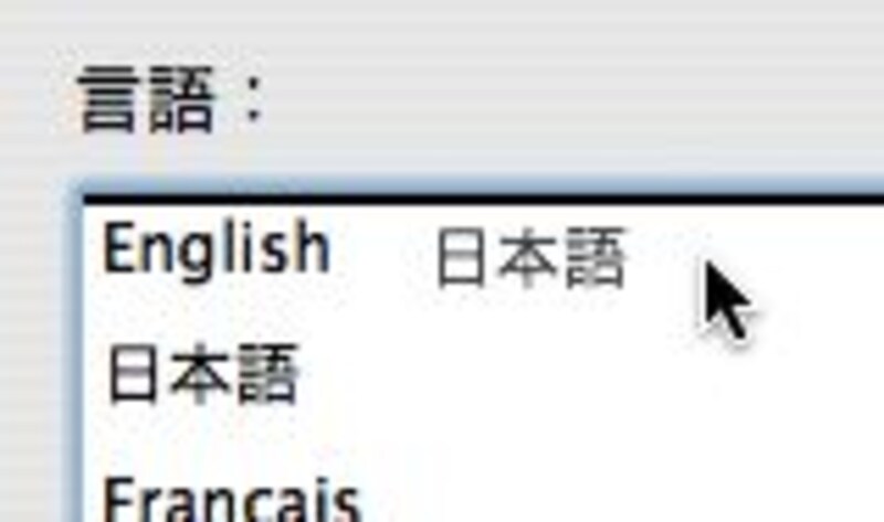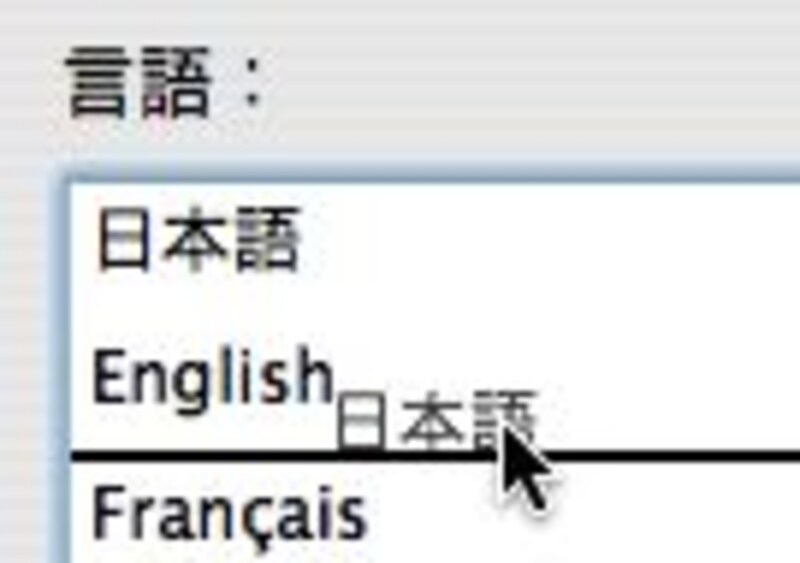 をクリック- 言語: の 日本語 をドラッグして一度、English の下に移動します
