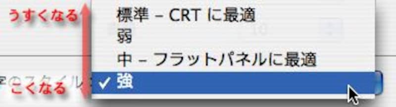 をクリック。- 「滑らかな文字のスタイル」を“強”にします。下に行くほど文字が濃く、太く見えるようになり、見やすくなります。