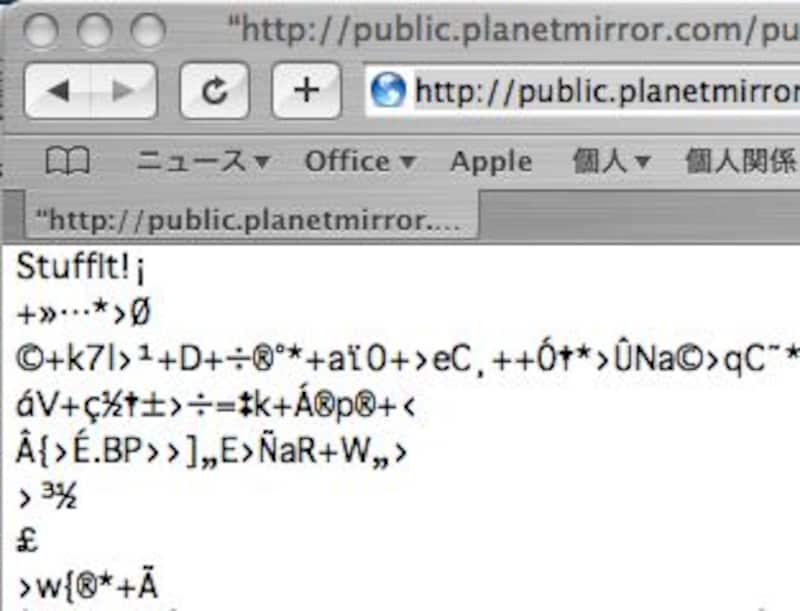 ファイルをダウンロードしようとすると画面一面に文字化けが・・・