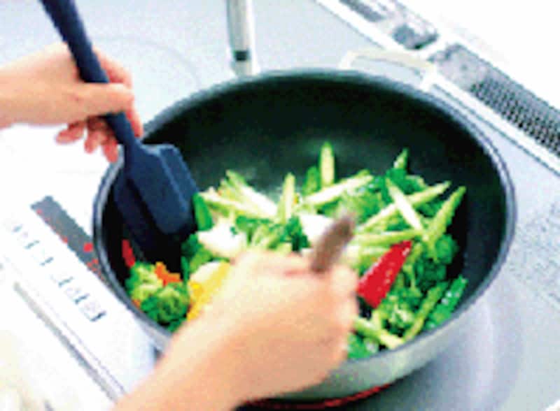 | 鍋をあおらなくても、食材をかき混ぜることで上手に炒め物ができる |