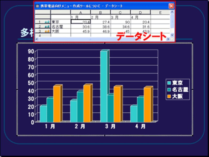 | データシートを目的のデータに修正するだけで棒グラフを作成できる |