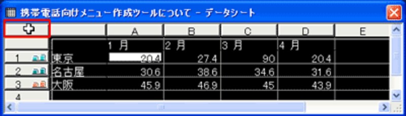 データシートの内容をまとめて消去します。それには、データシートの左上角をクリックしてデータシート全体を選択し、「Delete」キーを押します。