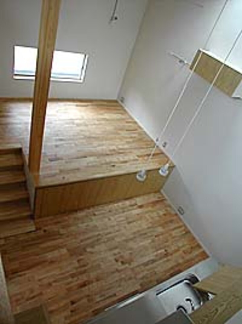 そして最後の階段を上りきると、そこにはしっかりと奥さんの要望であった「布団の干せるテラス」も用意されているのでした。そうそう、お嬢さんの個室ですが、こちらには小さなロフトが付いていて、そこはマンガ家の卵たちが描き疲れて仮眠をとるのに十分なスペースになっていたことも書き添えておこうと思います。