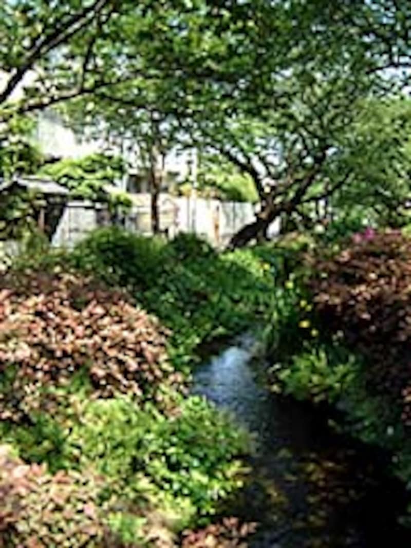 家の眼前にある代沢の桜並木の遊歩道は、自然環境をそのまま再現した小川の流れる快適な散歩コースで、そこには小魚が泳ぎ、サギや鴨もやってきます。竹田+並木邸はこの遊歩道に面した絶好の花見用バルコニーを持っていますが、そこはロビンちゃんにとってちょうどいい物見台になりました。