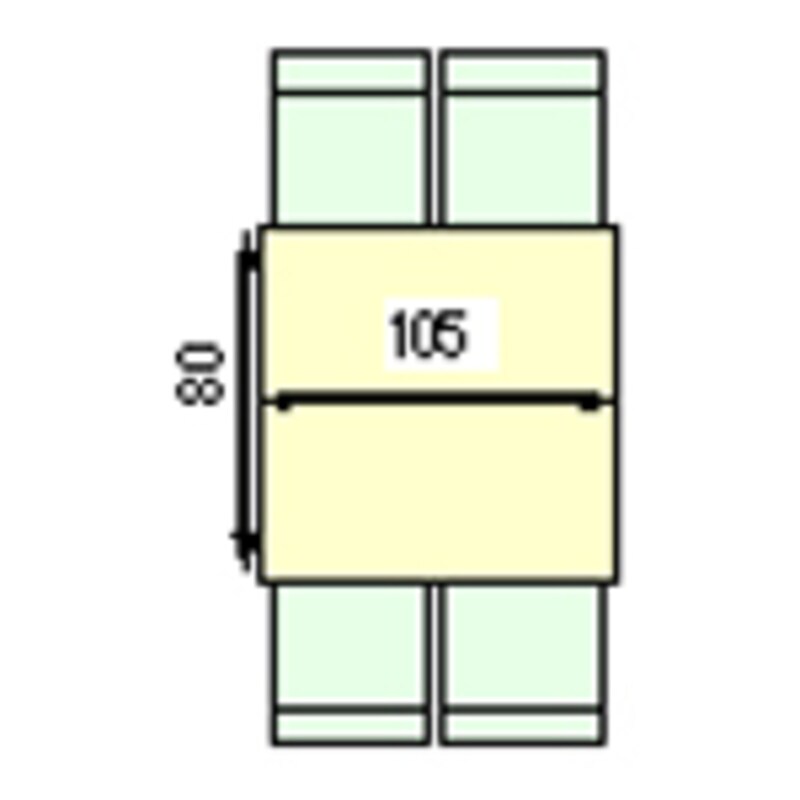 | 1人分に必要な寸法は約巾60cm奥行き40cm。4人掛けテーブルの目安は巾120cm奥行き80cmとなります。 |