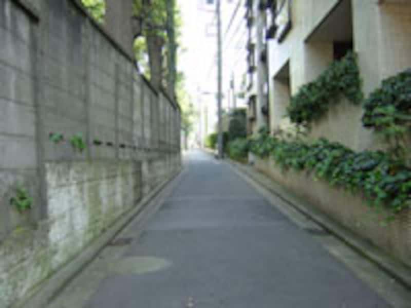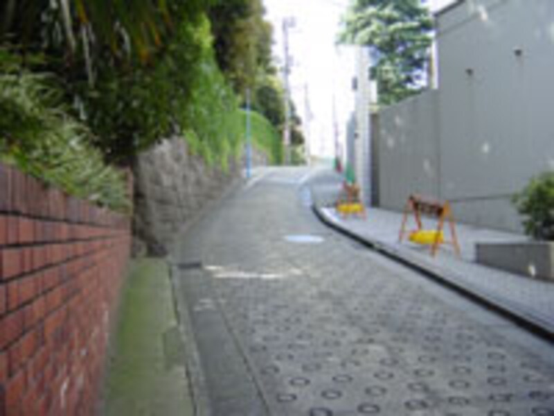 日本女子大学の西側にある細い路地。一瞬、これが坂? と思うほどゆるやかな傾斜で、霊も遊びやすいのでしょうか? 昔、この坂の西側に本住寺があったようですが、現存していません。ここの写真を撮った帰り、タクシーに轢かれそうになったのは霊の仕業だったのか? いいえ、目白の田中邸を横目で見ながら歩いていた私が悪かったようです。