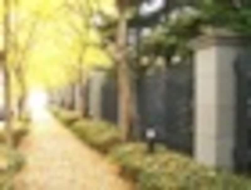 | 「麻布霞町パークマンション」(分譲:三井不動産)最も印象に残った道並みの好例。これがメインエントランス面でないところが邸宅たる所以。次のページでは、秋を |