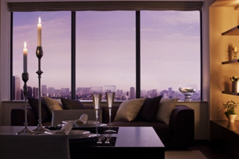 | 「中目黒」駅から徒歩2分。駅前再開発のタワーマンション「中目黒アトラスタワー」(モデルルームリビング写真) |