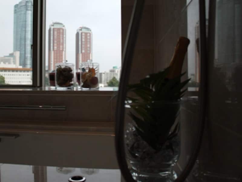 | 浴室窓からの眺め。右に視線を移せば東京タワーが。リビング側とは違った都心を堪能できる |