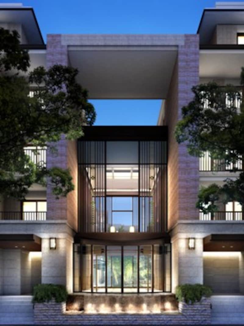 マンションの外観デザインは周囲の緑に映えるよう、天然石とタイルを組み合わせたアースカラーを中心に。また居室内からの借景を考慮し、ベイウィンドウ(出窓)やコーナーウィンドウを多用。その単調でない変化に富んだ外観デザインが、ひとつの景観となって道行く人の目を楽しませてくれるのではないかと思わせる。