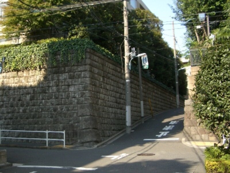 線を引いたように飲食店は姿を消し、マンション以外には大使館や学校などがあるのみ。古くは御屋敷街だった街並みが、今でも石垣や塀などにその風情を残している。