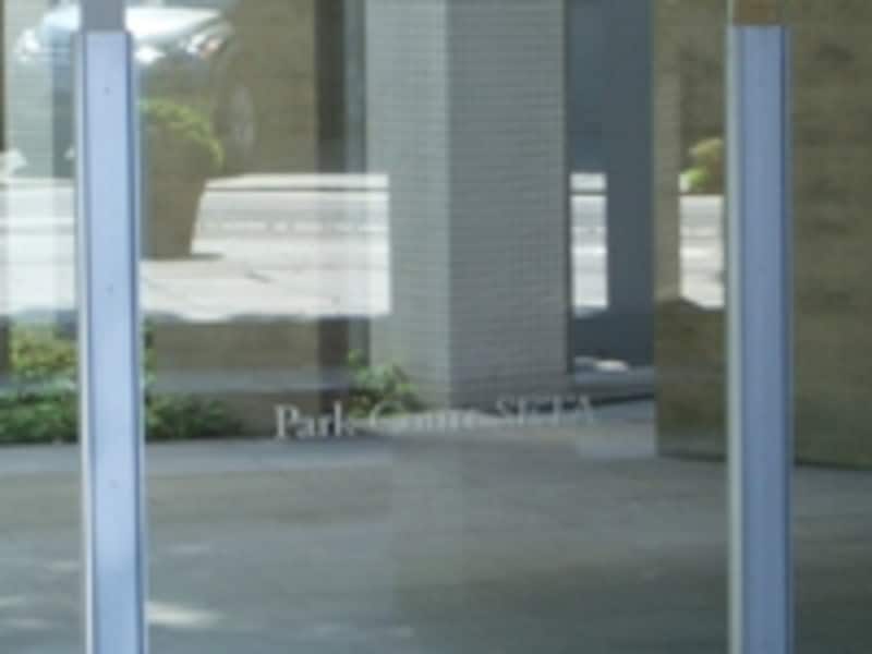 | ガラスに彫られた「パークコート瀬田」のサイン。パークコートでは珍しくシンプルモダンな色彩 |