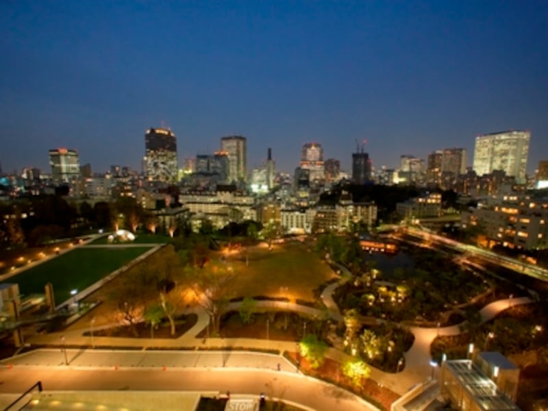 | 公園のおかげで夜景のアングルが絶妙。赤坂タワーレジデンスが完成すればさらに煌きが増すだろう |