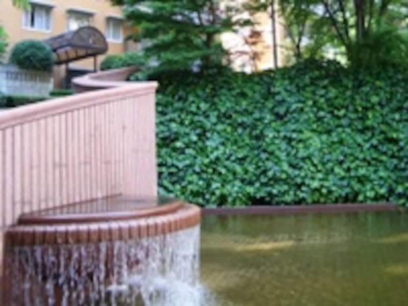 | サンクンガーデンにあるカスケードの水音が、ヒルズ内に心地良く響きわたる。これもセンター人気の要素のひとつだろうか |