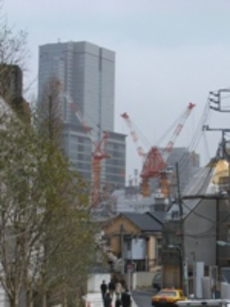 | 最近の赤坂では大きなクレーンや工事中のフェンスをよく目にする |