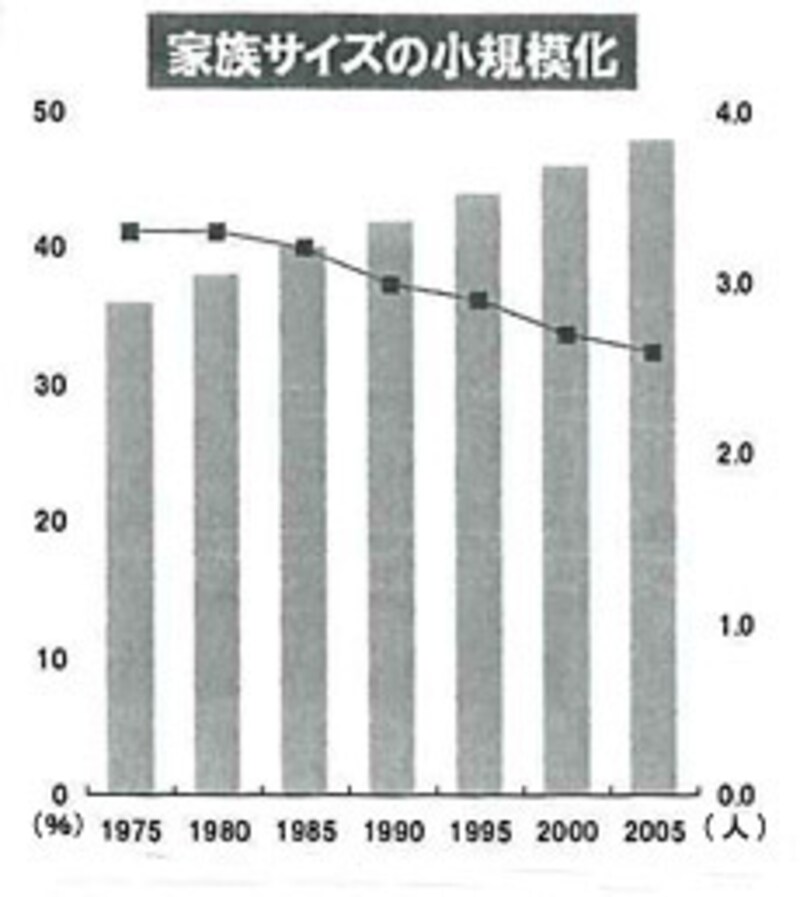 スーパーマーケットに行くと、今までになかったコーナーが出来ていることがあります。それが最近よく目にするようになった「カット野菜」のコーナーです。朝の忙しい時には簡単に済ませたいし、キャベツの大玉1個を買っても余ってしまう。そんなときにカット野菜はとても便利です。カット野菜が売れているという背景から、現代の家族像が浮かびあがってきます。