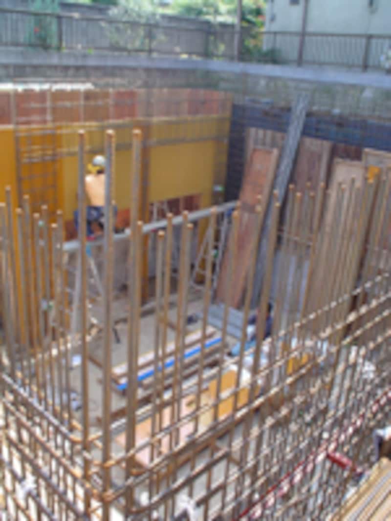 地階を設ける場合は、写真のように土留めを行う。