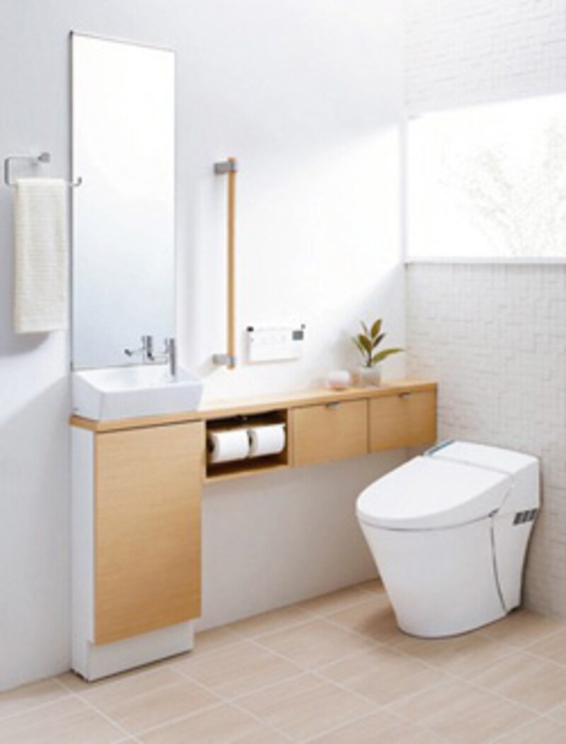 0.5坪トイレの空間バランスを見直して、デッドスペースを生かした収納を持たせたのがトイレ手洗カウンター『キャパシア』。INAXの調査によると、多くの物が置かれるトイレの理想の収納は、「豊富な収納」と「普段使いのものだけを収納したい」という声に分かれるとか。![]() |