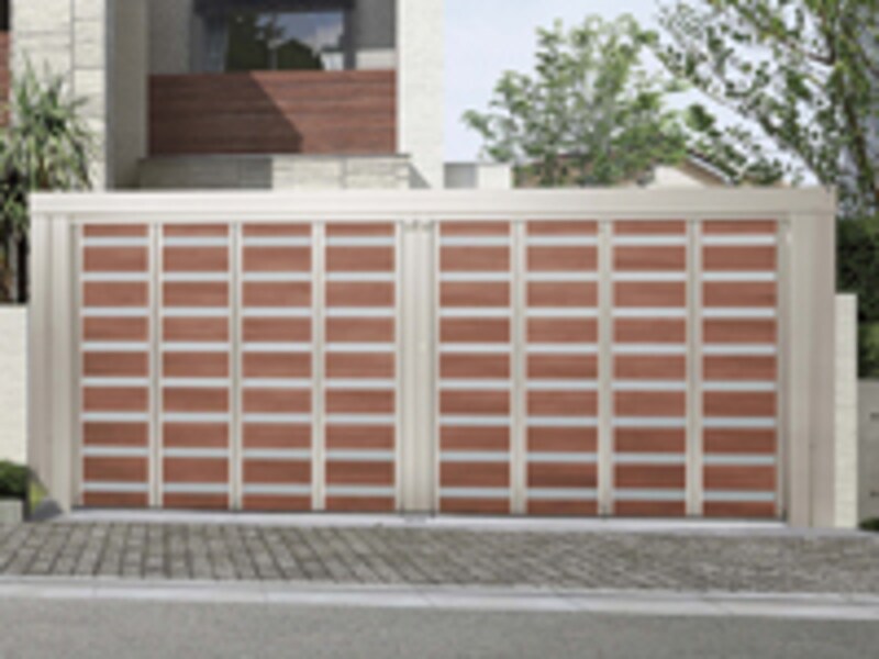 | プレミエスゲート ワイド YA型(ポリカーボネート入り横桟タイプ) 電動タイプ カラー:シャイングレー+ミディアムチェリー 価格:2,887,500円 ※価格は全て消費税込み。工事費、配送費は別途 |