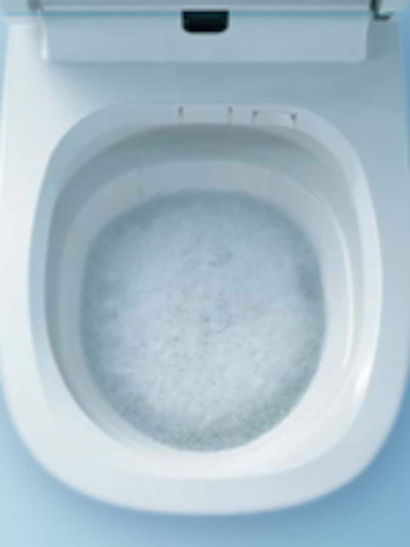| 気泡を含ませた新しい洗浄方式「激落ちバブル」。便器内を美しく保つ |