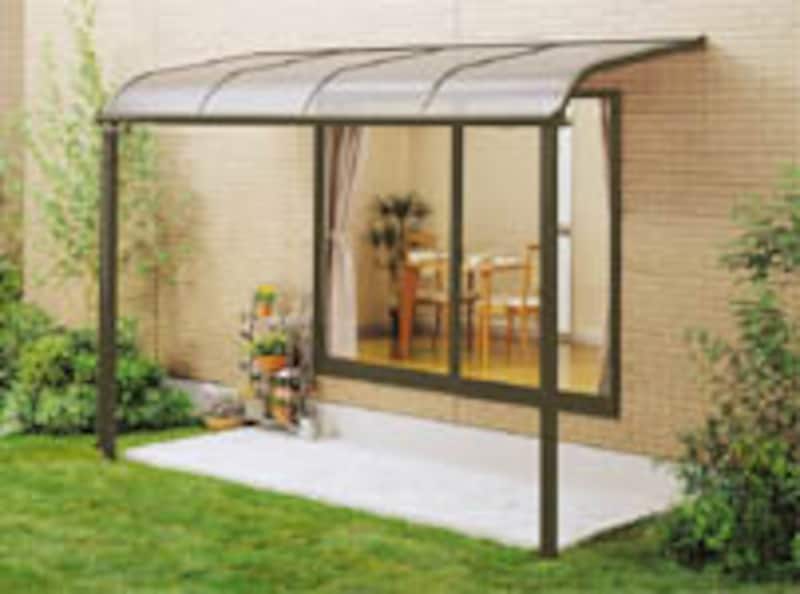 | 熱線を遮断するポリカーボネートなど多彩な屋根材、雨の吹き込みを和らげる側面スクリーン、前面スクリーンなどのバリエーションも豊富な屋根付テラス。<サンクテラス> 東洋エクステリア |