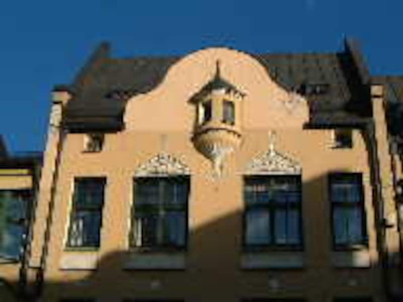 19世紀から20世紀にかけて、サーリネンといった建築家たちがヘルシンキの街をプランニング、そして造り上げました。けれど、建築という分野では、もうひとつの流れがあったのです。「建設工匠」といわれる職人たちは、ヘルシンキ中心部から離れた住宅地で、中産階級のための都市型住宅を量産しました。現在もほぼ、当時もままに残されている地区がいくつかあります。そんな住宅街を歩くと、ちょっとぶきっちょな、素朴で微笑ましいデザインが多く見ることができます。