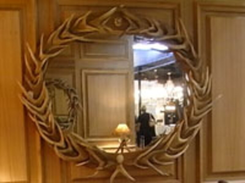 スコットランドの>「CLOCK HOUSE FURNITURE(クロック・ハウス・ファニチャー)」では、注文に応じてアントラーチェアを作っています。右の写真のアントラー・ダイニングチェアはRed Deer赤鹿の枝角でつくられています。左のアームチェアは、ハンティングで得られた赤鹿の枝角の大きなものを使い、貼られているハラコの皮革が野性味たっぷりの椅子です。