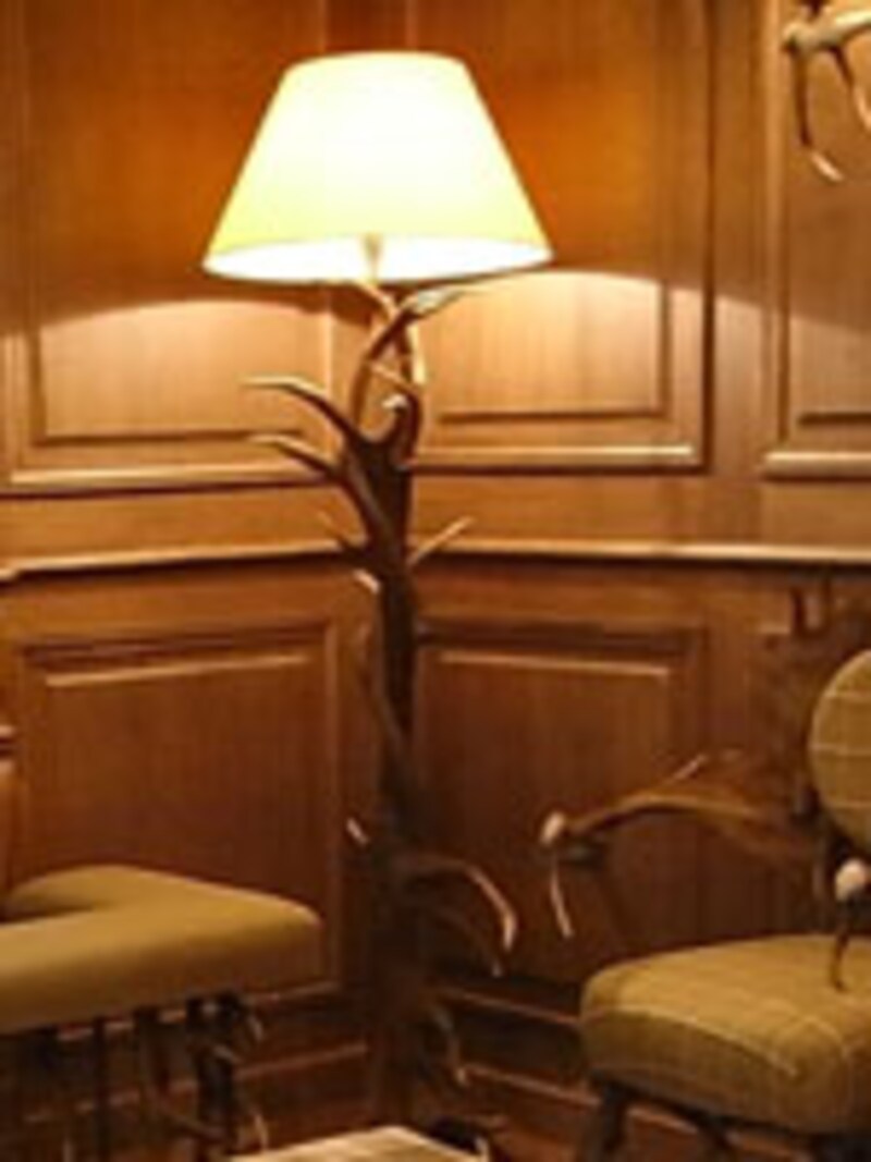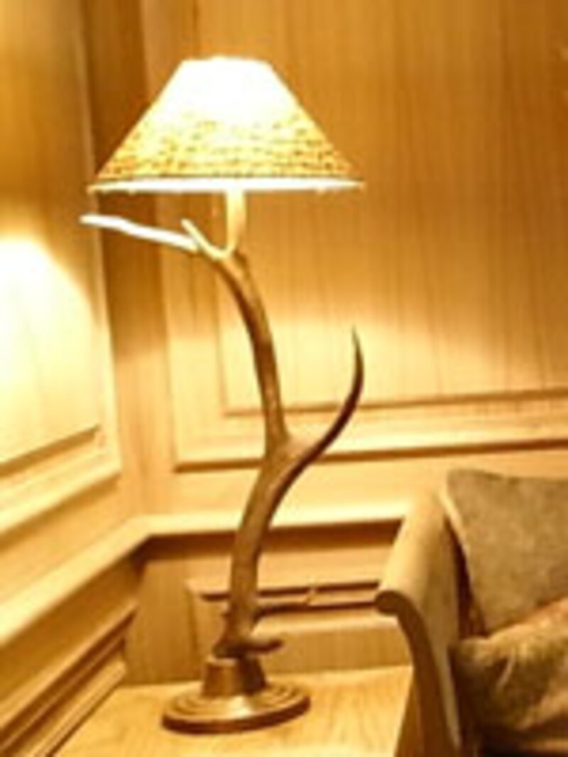 鹿の枝角のさまざまなカタチを上手く組み合わせて作ったランプスタンドです。この他にも、白い枝角を使ったものや、樹脂キャストにLED照明が組み込まれたブラケット照明などさまざまです。