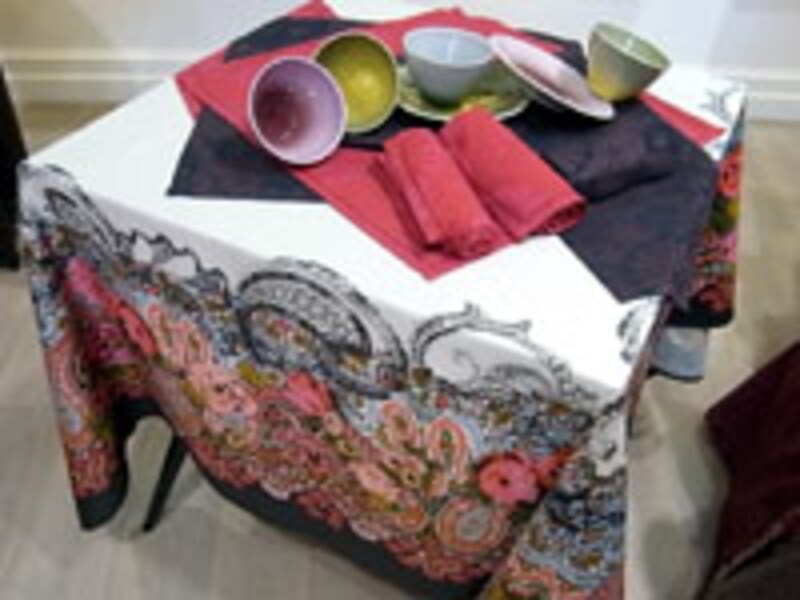 特に、ベッドリネンやタオル、テーブルリネンなどのホームファッションのプロダクトに顕著に表れていたのが、発色のよいピンクでした。まるで低迷する景気への反逆するかのように、Corail(コライユ[仏]/珊瑚礁)とPistache(ピスタッシェ[仏]/ピスタチオ)などの複数のやさしいカラーの組み合わせが、時代を反映しています。