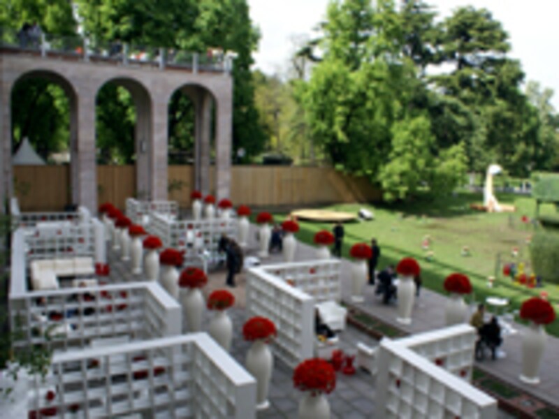 | センピオーネ公園の一角にあるトリエンナーレ会場で開催されたKartell outdoor(カルテル・アウトドア)の展示模様。 |