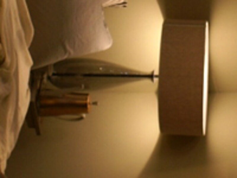 ファブリックはすごくナチュラルな組み合わせ、でもベッドサイドに置かれたのは、スッキリとしたガラスのベースのライトスタンドと金属のポット。ナチュラルティストに、このようなシンプルな冷たさをあわせているのが、SOCIETY“simply chic”の特徴です。