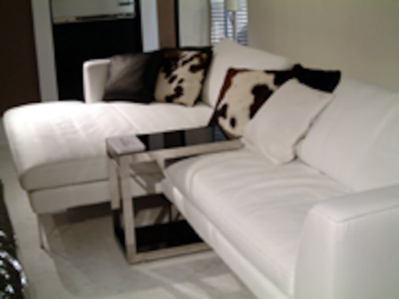 ゆったりと置かれたホワイトの上質な牛皮革のソファ。そこに置かれた毛皮のクッションが大人空間をつくりあげています。自然のアニマル柄をバランス良く取り入れた空間は、洗練されたセクシーさを感じます。
