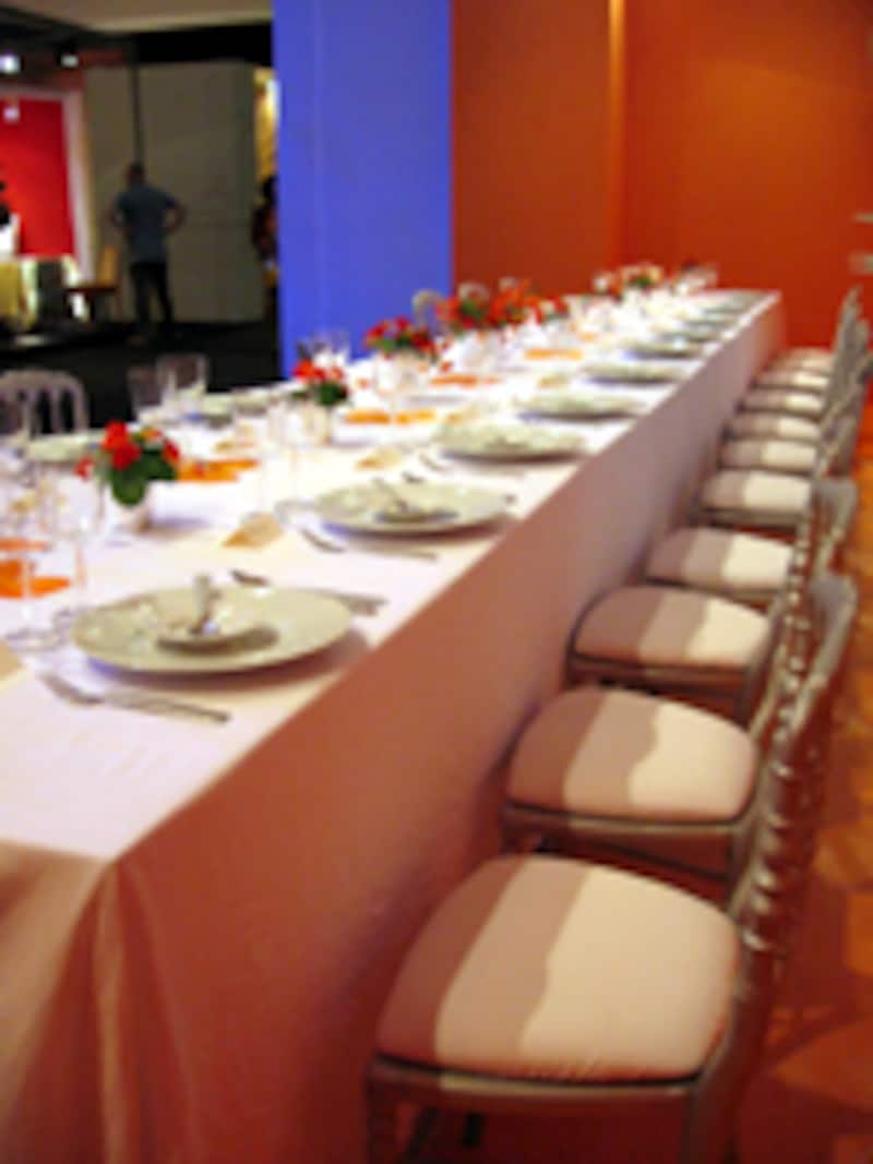 3メートルはあるかと思われるmarriageのため大テーブル。上の写真でテーブルに掛けられたクロスの前面刺繍に注目してくださいね。キンレンカの葉は直径30センチもあります。