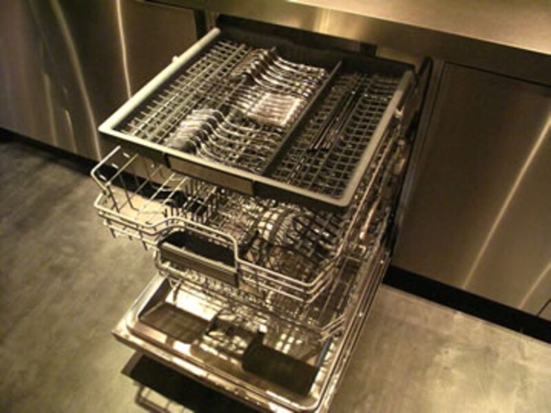 新しくラインアップに加わったのが、60cm幅食器洗い機DI 260-411(単相200V-1.6kw・税込¥396,900)。他に45cm幅の食器洗い機DI 240-410(単相200V-1.6kw・税込¥281,400)もある。