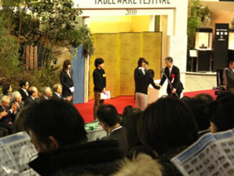 1月29日午後3時から開催されたオープニングセレモニーでは、高松宮妃殿下列席のもと主催者挨拶と来賓挨拶に続いて、今年度のテーブルウェア大賞の表彰式も行われ、テープカットのあと内覧会となり、今までの受賞者、招待者、プレス関係者の方達1,500名近い参加があった。