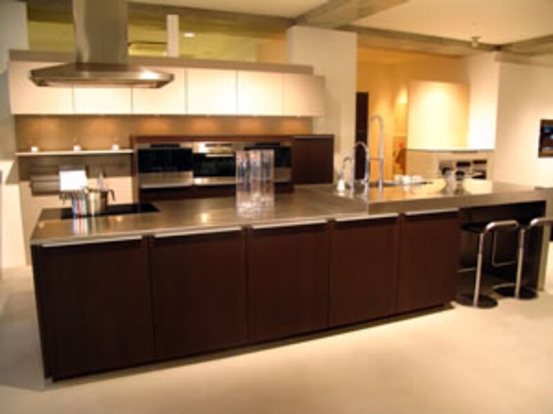 20センチほどの高さのステージにセットされたこのキッチンは、今までACTUSに展示されていたが、今回の展示で見違えるような存在感を見せている。概算価格3,000万円のキッチンはかなり魅力的だ。