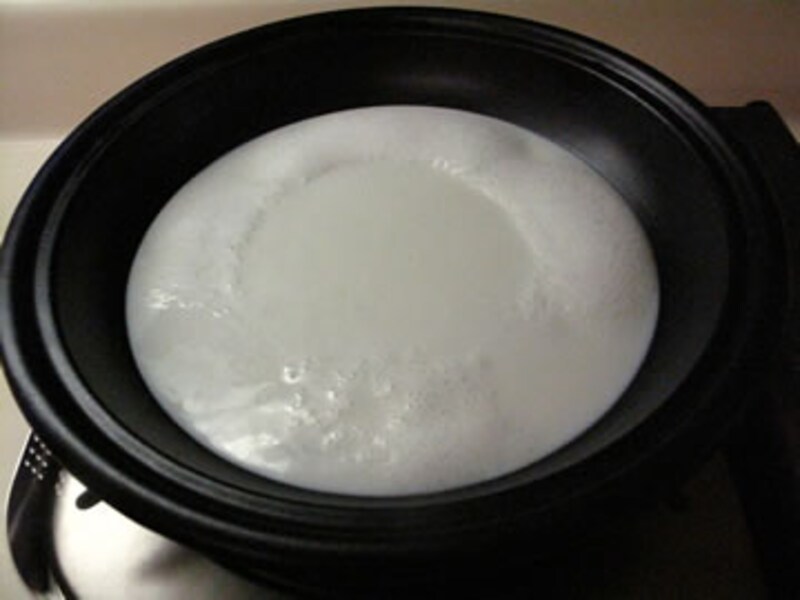 タジン鍋は購入して使いはじめる時には、普通の土鍋と同じように米のとぎ汁や牛乳等を沸騰させて、鍋に皮膜を作って水分を染み込みにくくする手順が必要です。