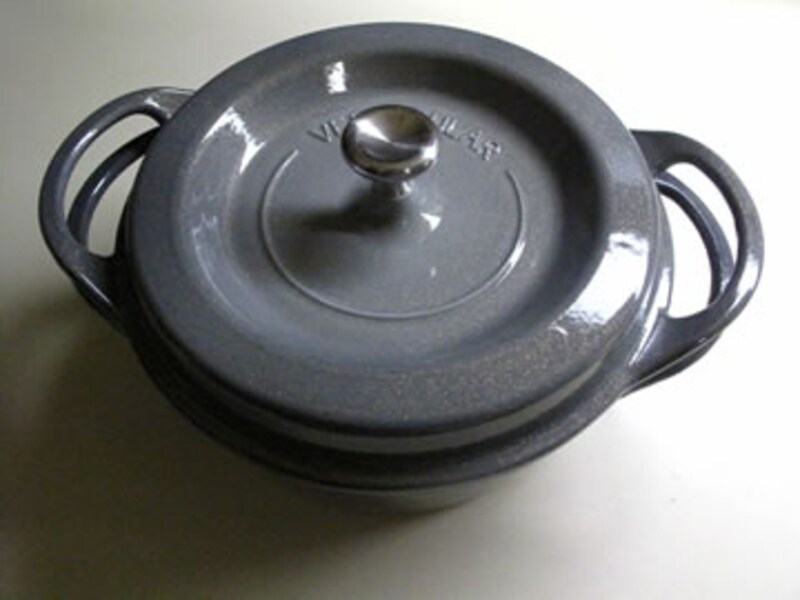 蓋の重量と気密性の高さが圧力鍋に近い効果を生み出し、ヘルシーで美味な無水調理を可能にしている。